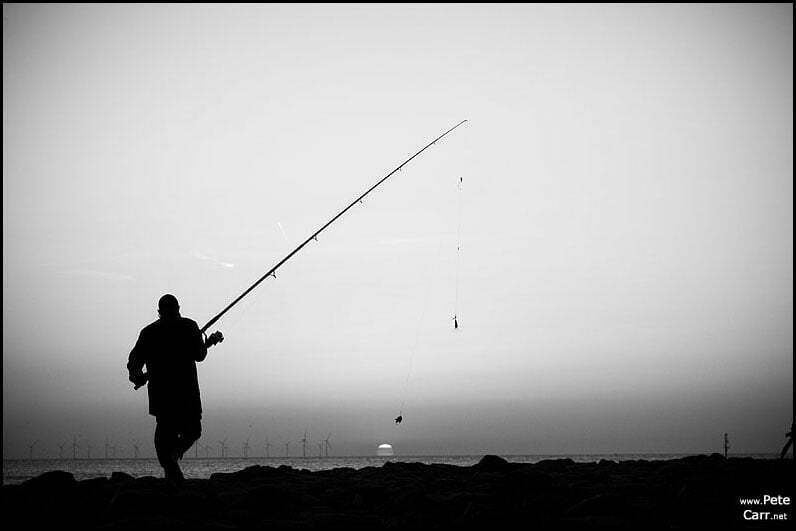 A random fisherman at New Brighton tries to catch the last minutes of light.