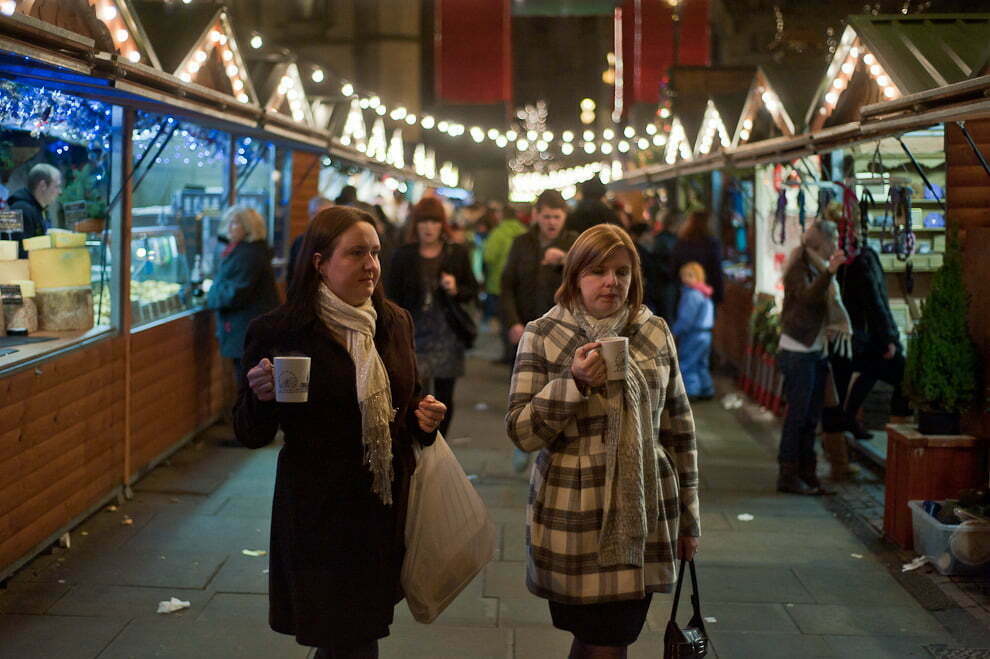 A simple shot of people walking around Manchester Christmas market holding mugs of hot chocolate or mulled wine. The odd thing is the couple behind the mug holders. They appear to be doing a sort of ‘Invasion of the bodysnatchers’ style stance. I’m not sure whats going on there.
