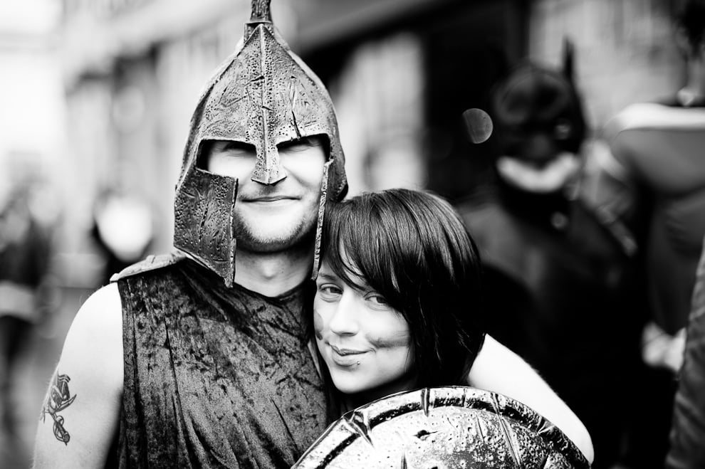 A quick portrait of a couple in fancy dress doing the usual thing in Liverpool on a Saturday night. They had come over from the Isle of Man. That is Batman in the background.