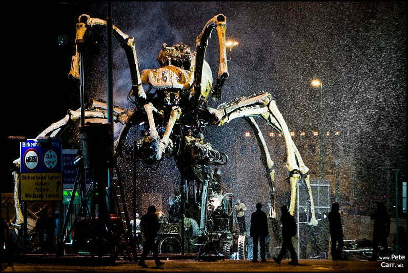 What a night. Fire, water, more water, lots more water, fireworks, giant spider about to crush me and a lost hat. Luckily for us we got caught in the wrong area so they had to put us right at the very front. Shame eh. There was no way we could get through the crowd to the press area and I’m glad. I saw the photos on the BBC site and they’ve got lampposts in, trucks, heads and cameras all blocking the view. We got a great clean view of the action, and then soaked. I turned into a tent at one point to protect my gear. I’m normally not that bothered but this was like being in a waterfall. After it had all finished I realised that in the middle of all the action I left my hat in the gutter. Luckily I found it after. Easily the best thing this year. I can’t imagine anything topping it. I literally took my hat off to it.