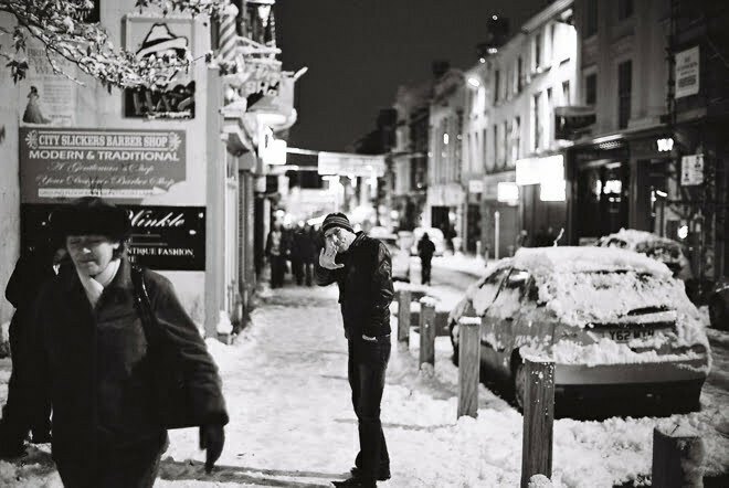 Most of all though, I’m impressed by the shots from last week when it snowed. I went out to meet some friends for a drink and only took the Leica. It snowed heavily. I knew there was a chance of snow but I didn’t think it would be as photogenic as it was. Thing is that the Leica isn’t a bad camera. I’m just not good with it yet. So I reminded myself of all the people who’ve used one and took pictures. f/1.4, 1/50 and ISO400 film in the cam. It worked so well.