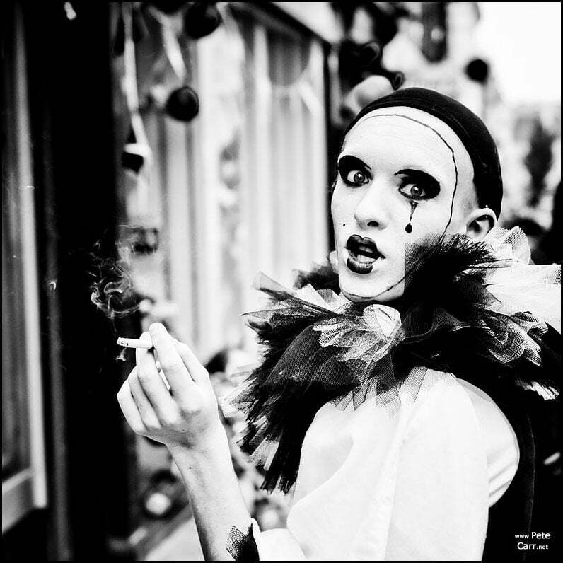 This is rather special. What’s not to like? The pout, the pose, the make up, the frills, even the cigarette all add up to an amazing image. Works so well in high contrast black & white too.