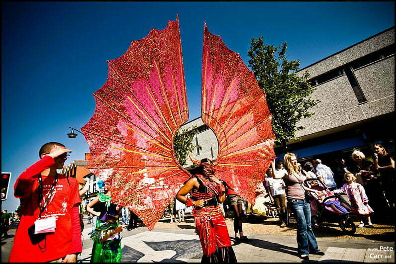 Very nice! I love the fact you have a red traffic light, a guy wearing red and the red wings. 🙂 Now you need to go back and give them all Red Bull!