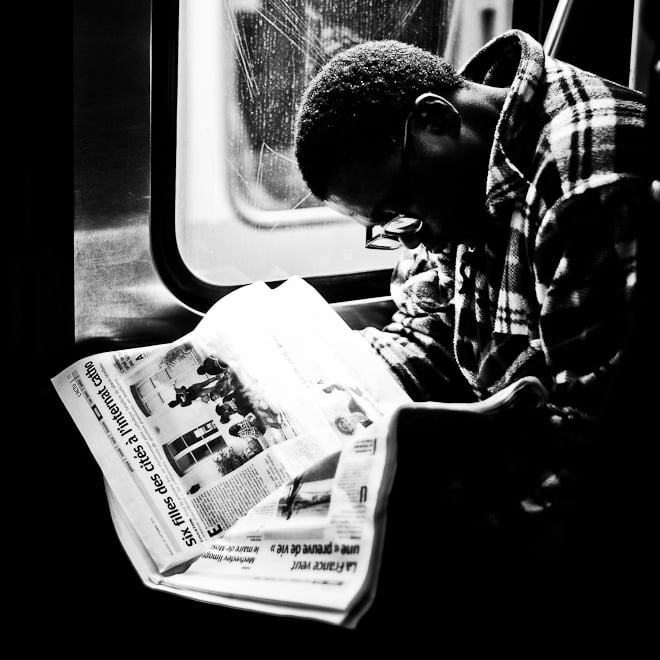 Great shot! I love the lighting here enhancing the man’s jacket. B&W conversion is great, with very deep blacks and a strong contrast. DoF is brilliant.