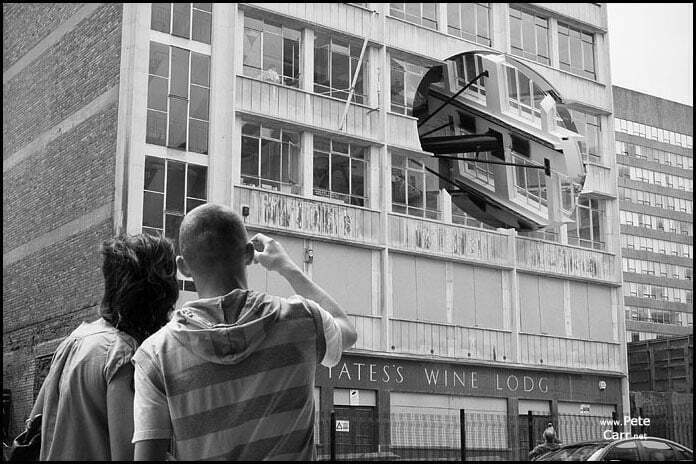 This is called “Turning the place over.” Its great. Liverpool needs more things like this. Completely random bits of art that make you go “eh?” Sure passers by had no idea what it was for or why they did it but everyone stopped and looked. I think thats the important bit with art. It makes people stop and for a brief moment, think. It adds something to your day. Everyone getting off the train at Moorfield’s station will see it. What you can see here is a giant egg shaped cut out that rotates. The black blocks are radiators on the inside. Its very impressive to watch and you should take 5 mins out your day to have a look. You can see a video on Liverpool Stories. That will give you a better idea of what it is.